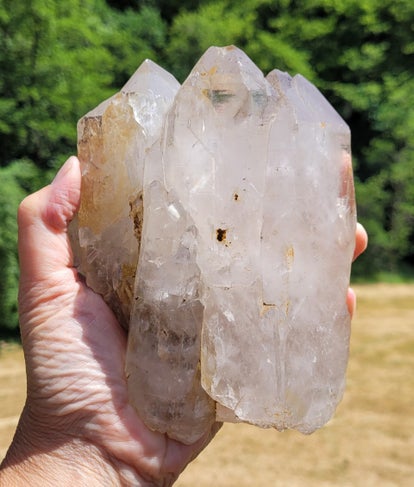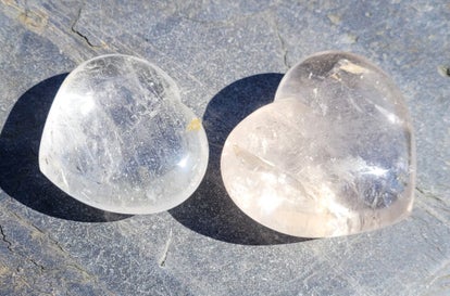 Mooie harten bijna helder Bergkristal, links heeft klein insluitsel limoniet.