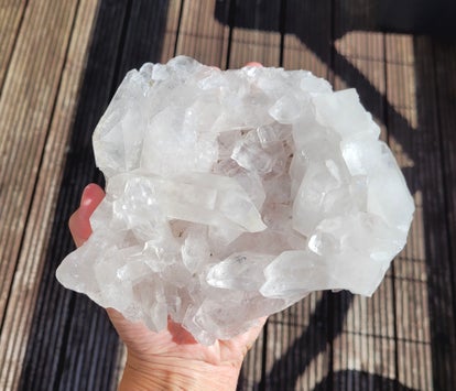 Clear Quartz cluster with crystals on almost all sides, in every direction. Big double terminated crystal.