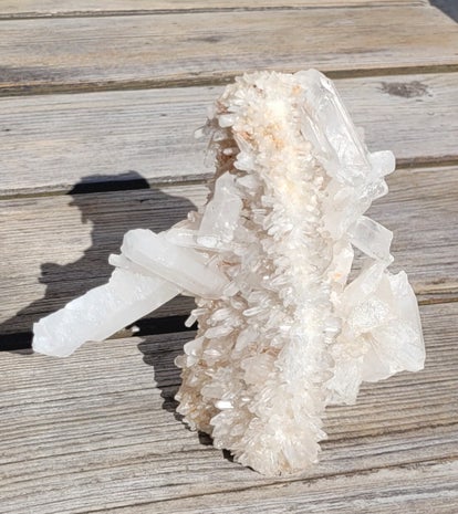 Bijzonder cluster Bergkristal uit Diamantina, Brazilie. Deels helder en aan beide kanten kristallen.