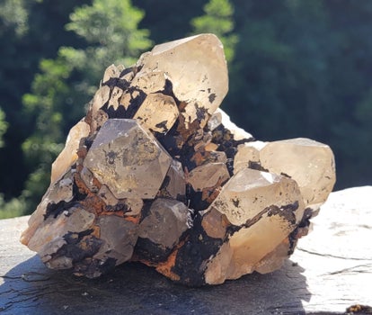 Big cluster Citrine from Congo with dark Hematite on it.