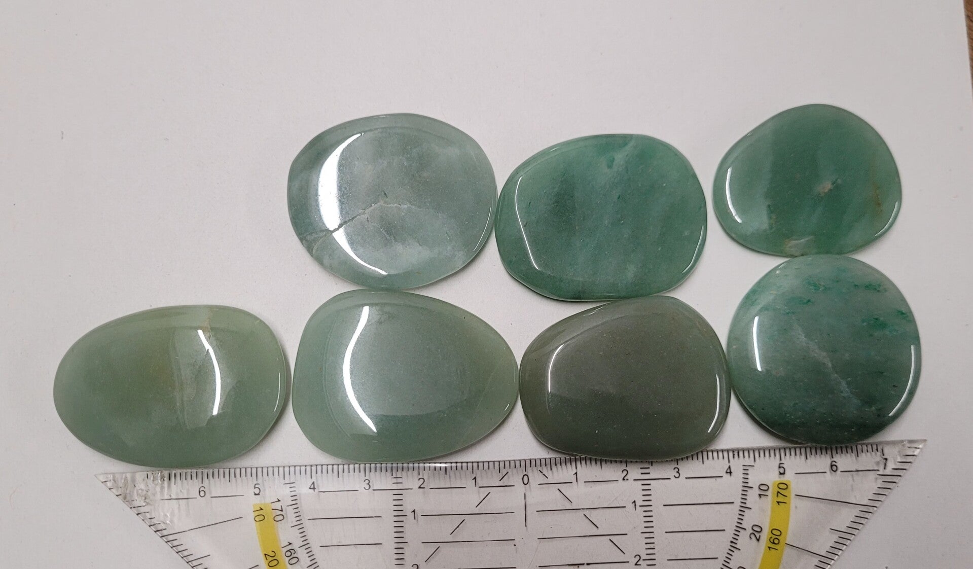Mooie schijf Aventurijn. Bijna allemaal ovaal.
