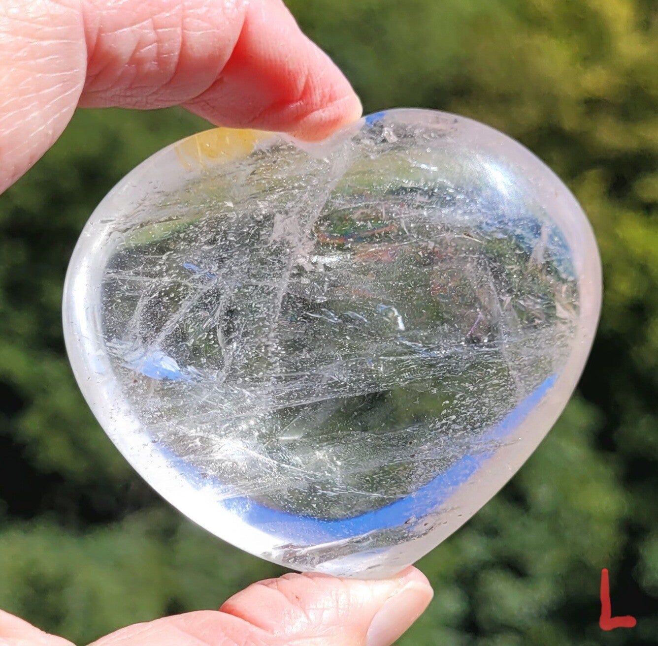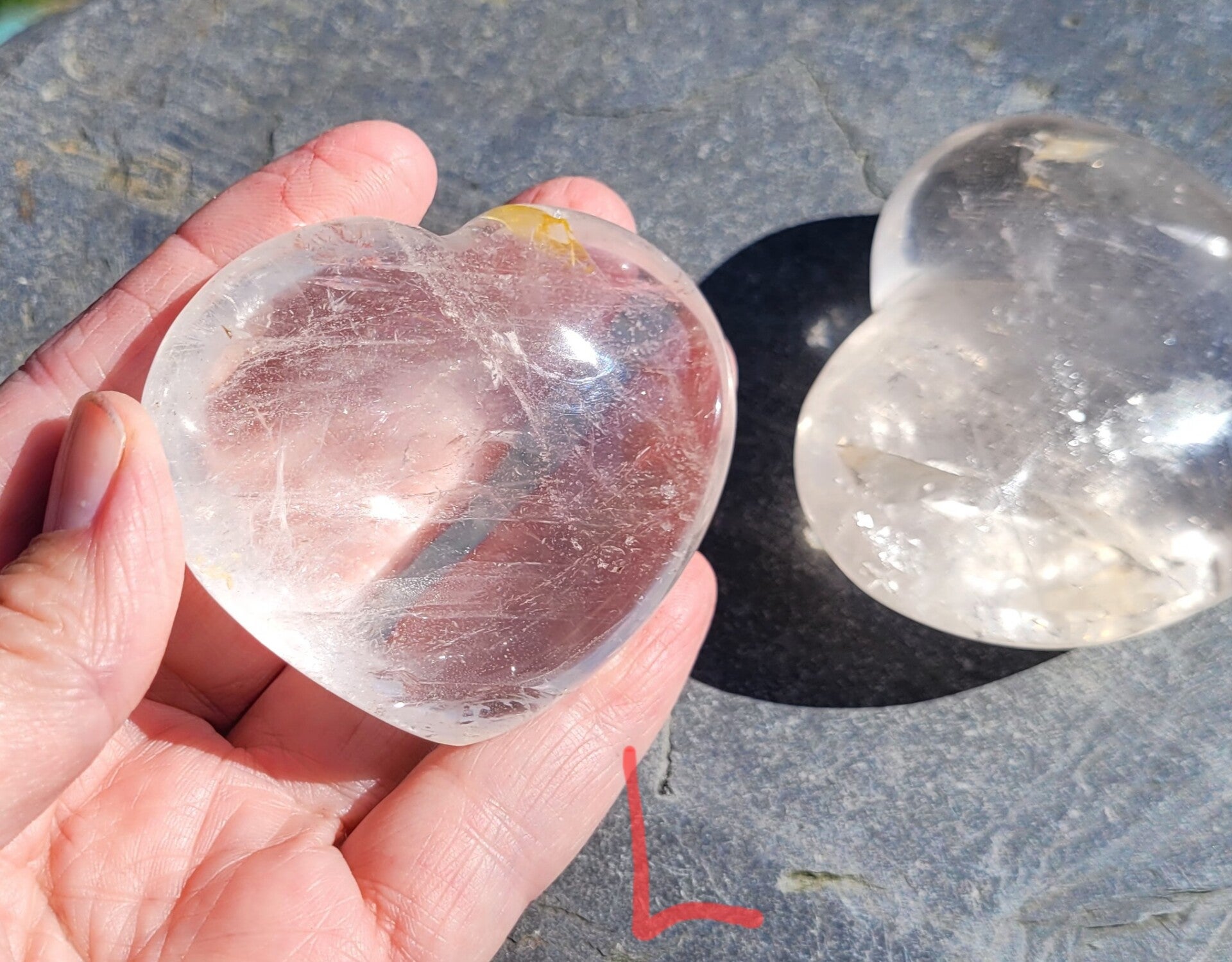 Mooie harten bijna helder Bergkristal, links heeft klein insluitsel limoniet.