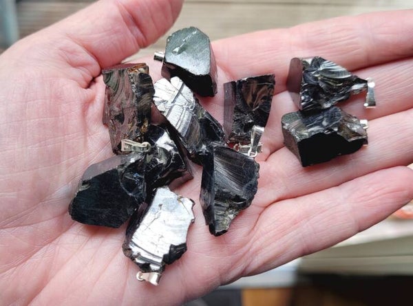 Mooie hanger ruwe shungiet met oogje. 1 van deze