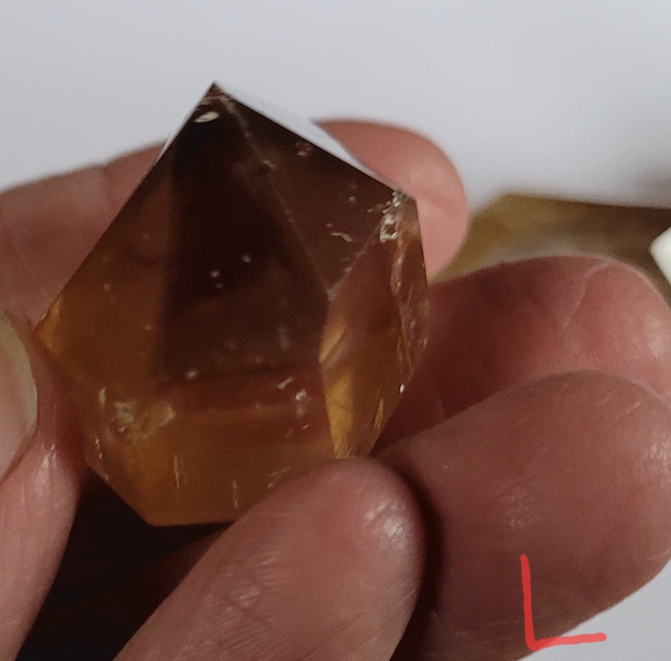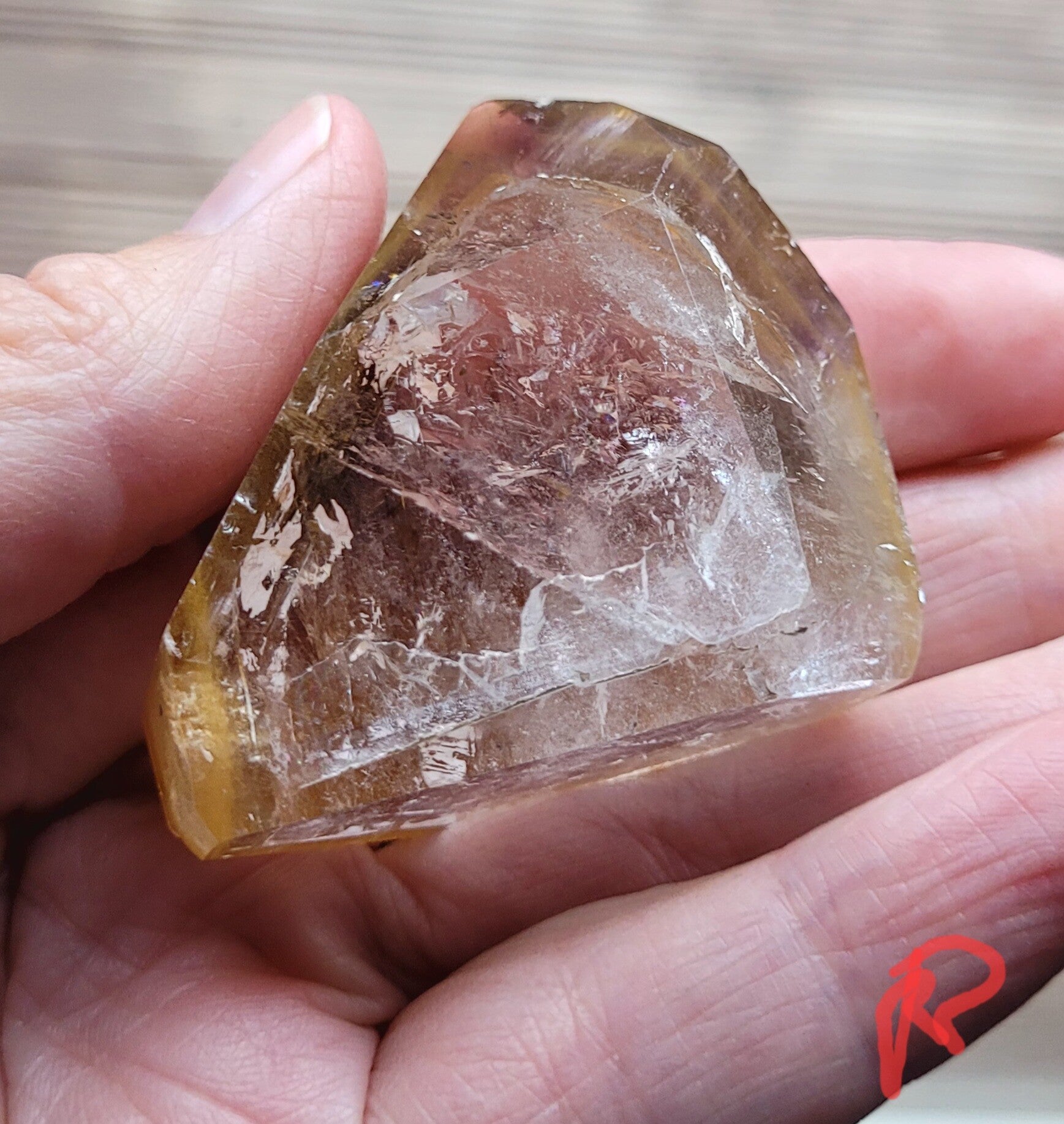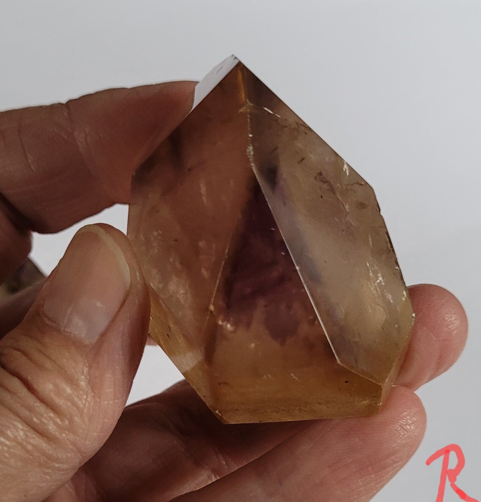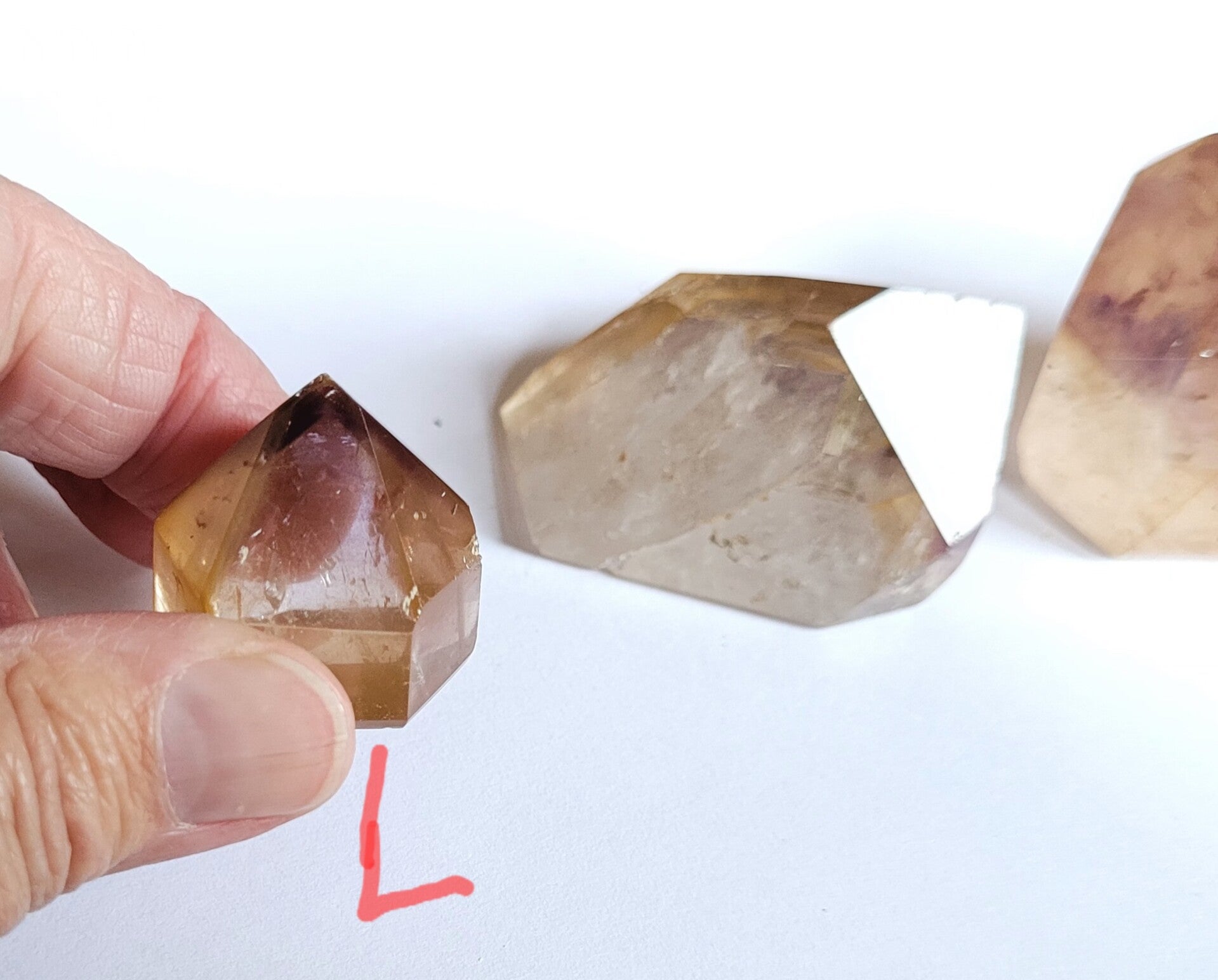 Aangeslepen punten Amethist met hematiet of limoniet. Ijzermineralen.