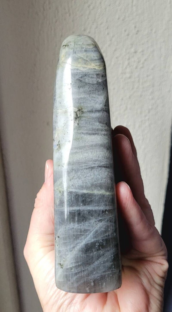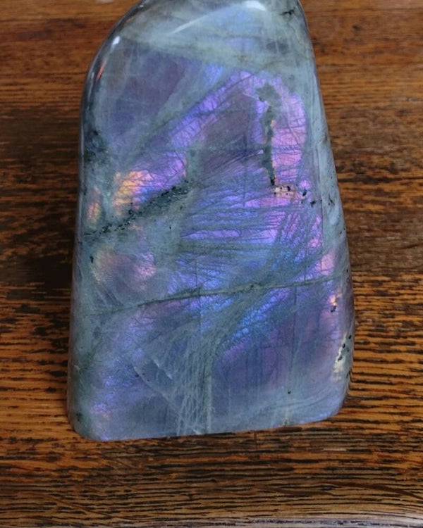 Sculptuur Paarse Labradoriet, soms paarse, soms roze Flash. Ook wel mermaid Labradorite genoemd.