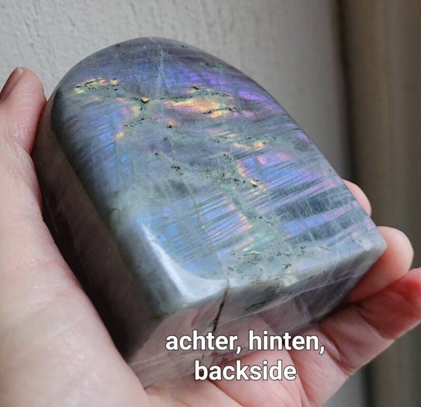 Sculptuur Paars, Roze Labradoriet uit Madagaskar. Ook wel mermaid Labradorite genoemd.
