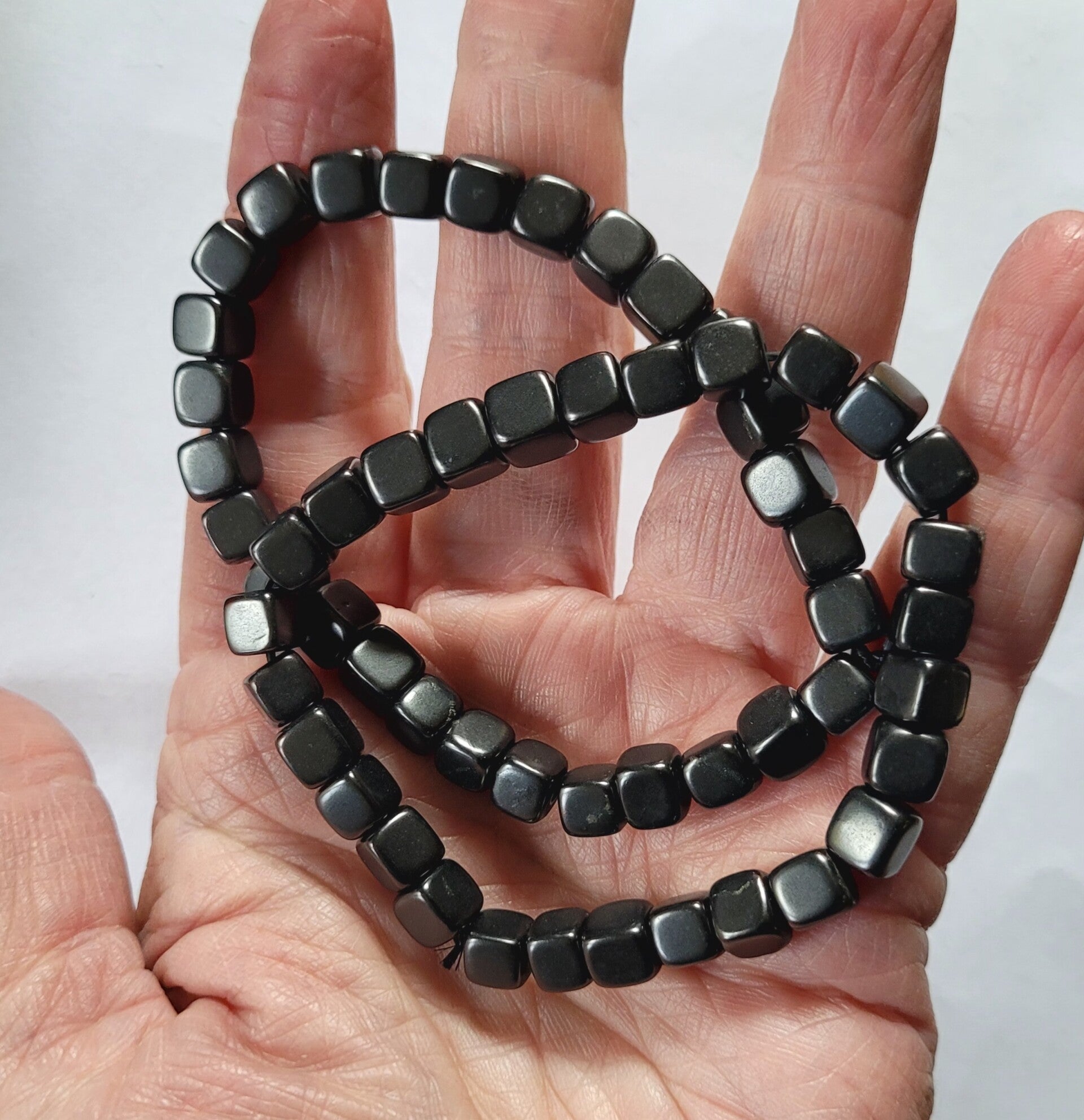 Armband blokjes Shungiet 6 mm. Schungit würfeln 6 mm, Shungite cubes 6mm