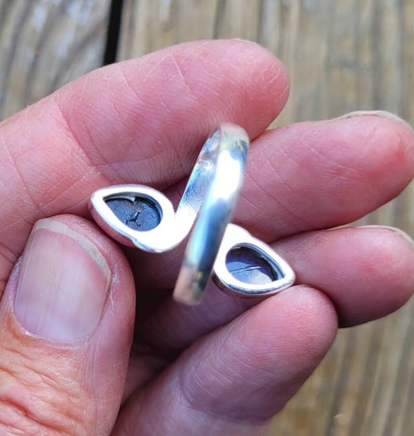 Silber Ring mit 2 Labradorit Steinchen. Verstelbahr