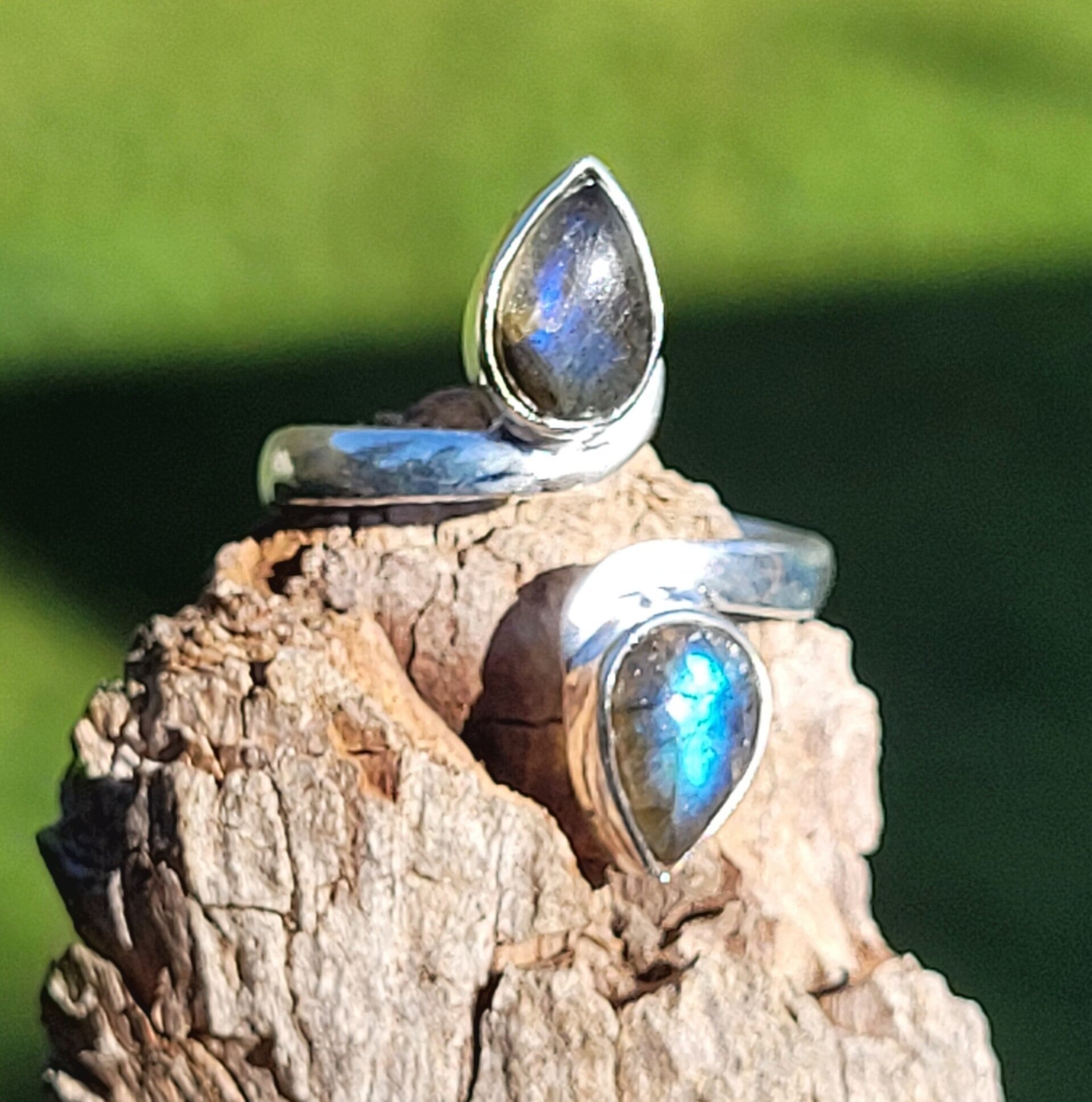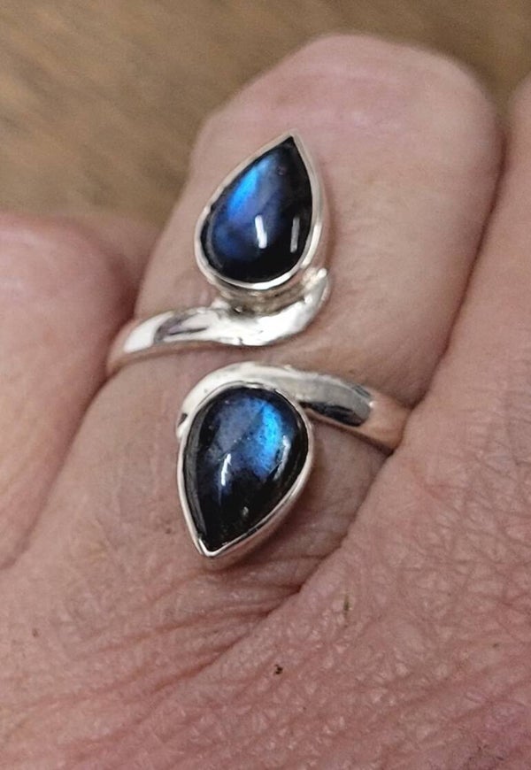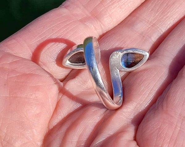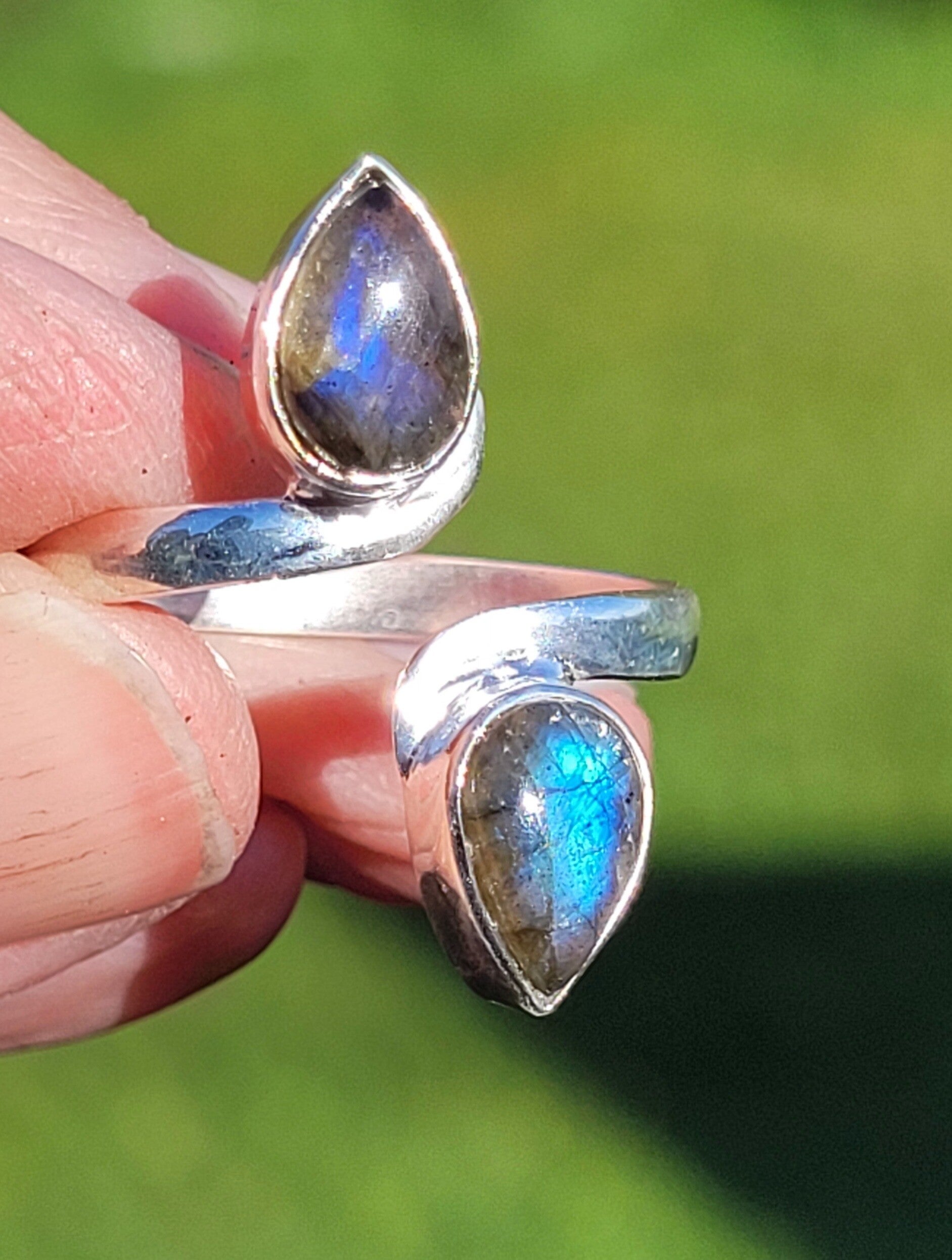 Silver Ring wit 2 Stones Labradorite. Adjustable