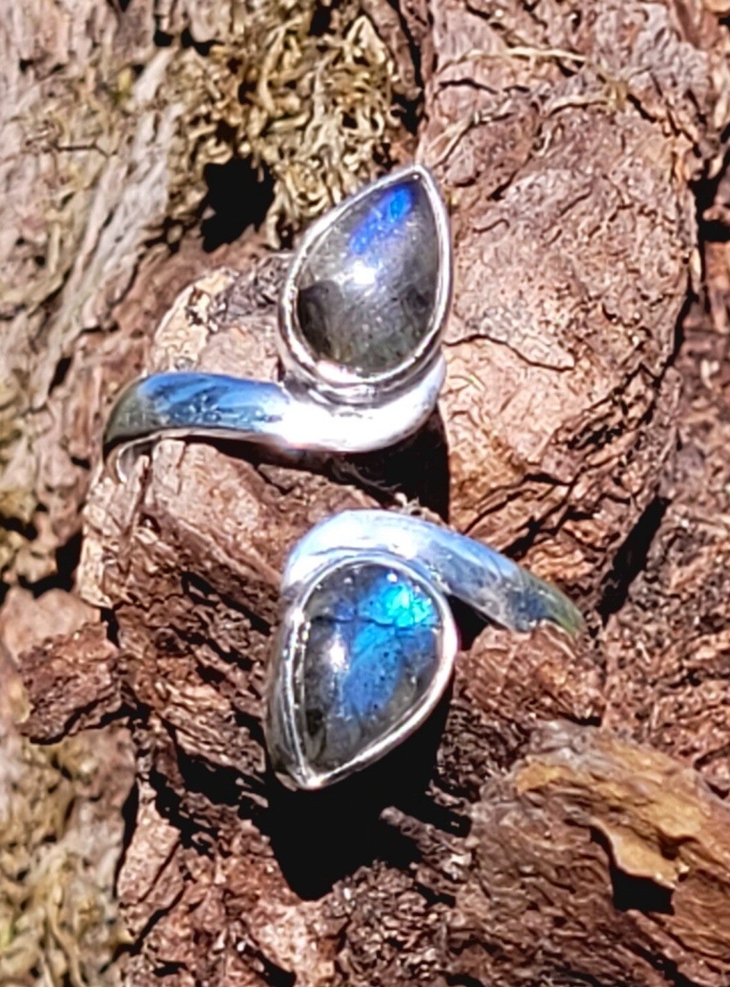 Silber Ring mit 2 Labradorit Steinchen. Verstelbahr