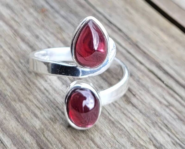 Adjustable silver ring With 2 Granate stones.