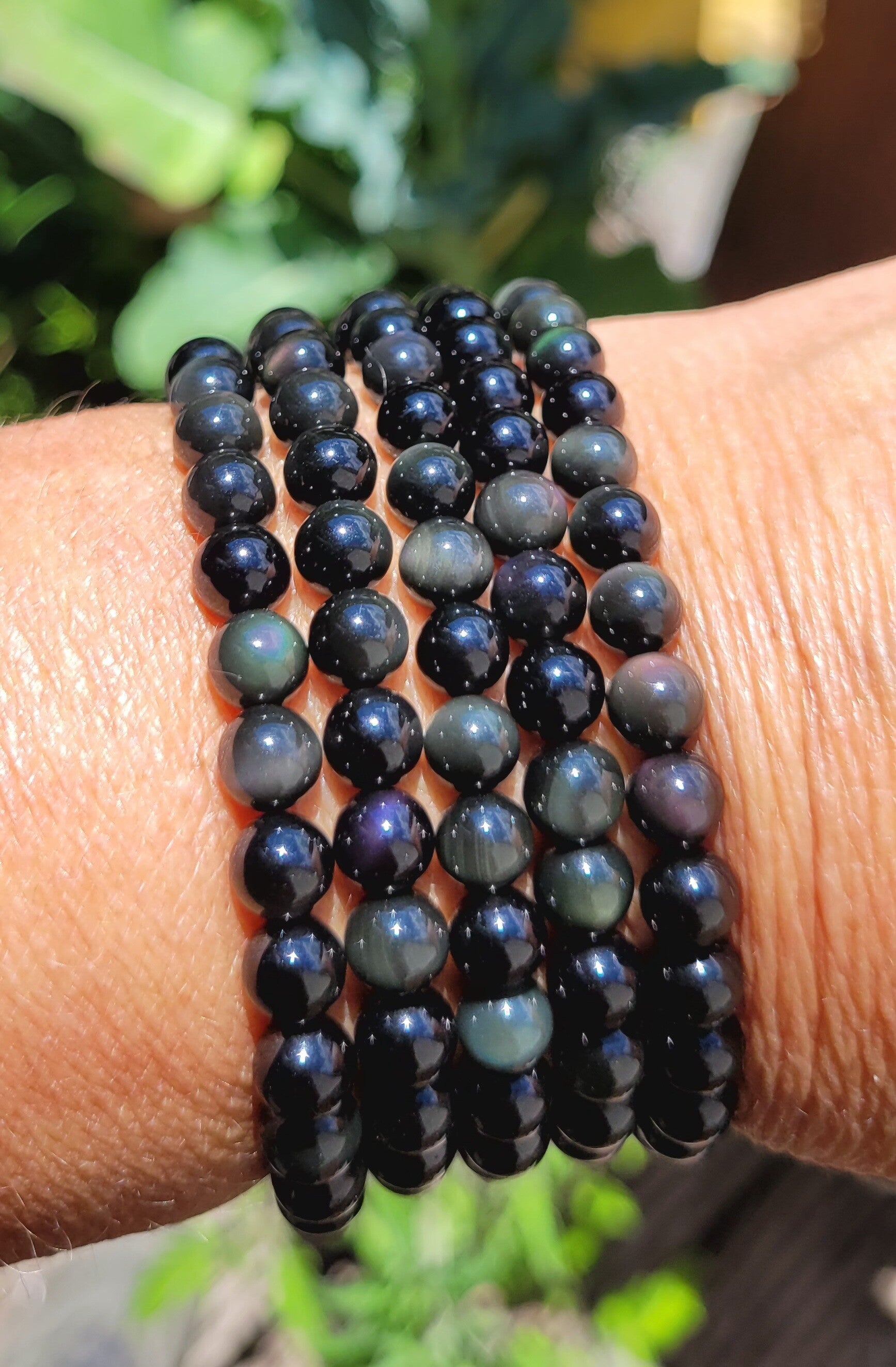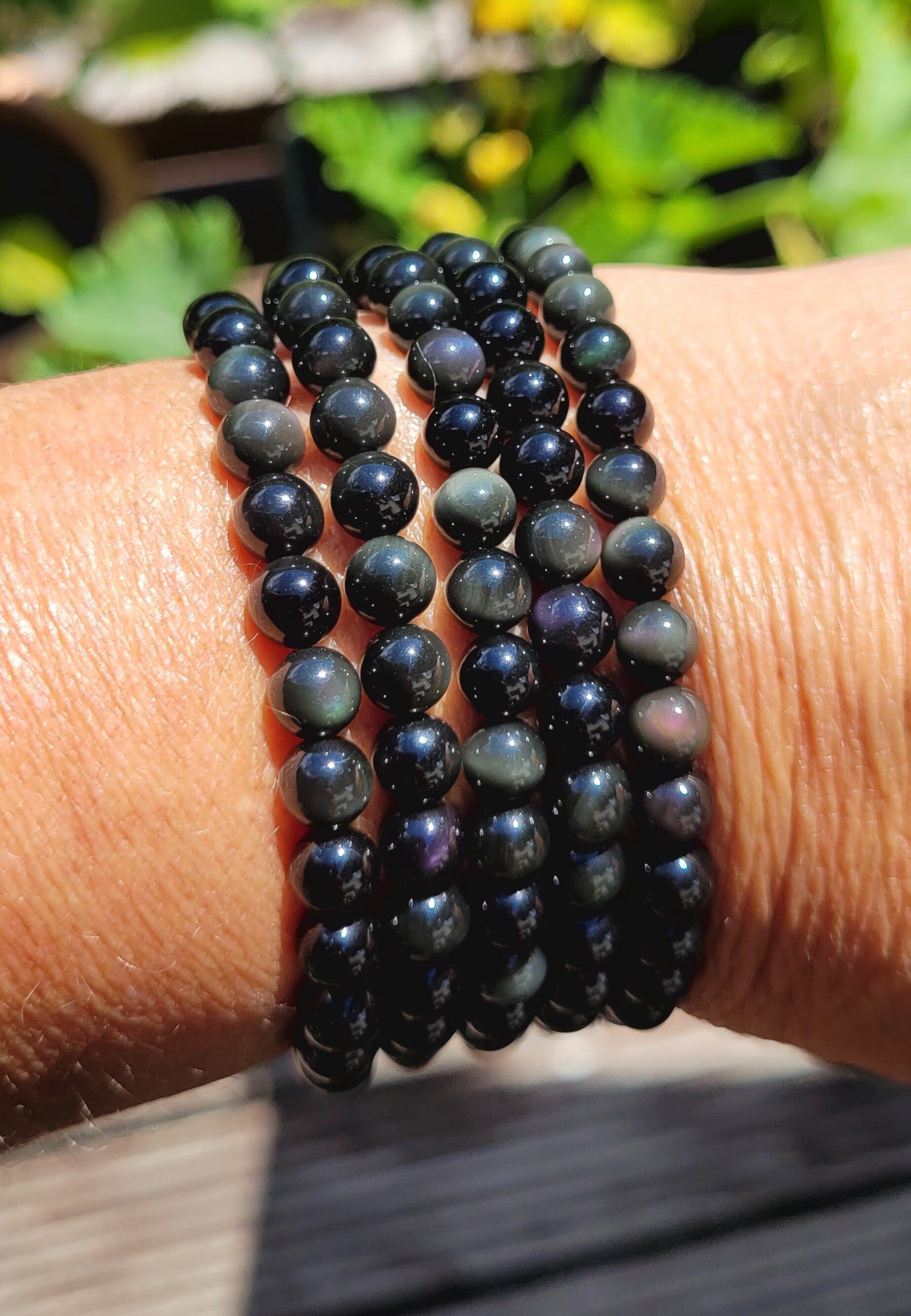 Rainbow Obsidian bracelet, Armband Regenboog Obsidiaan 6 mm bolletjes, Kugeln Regenbogen Obsidian