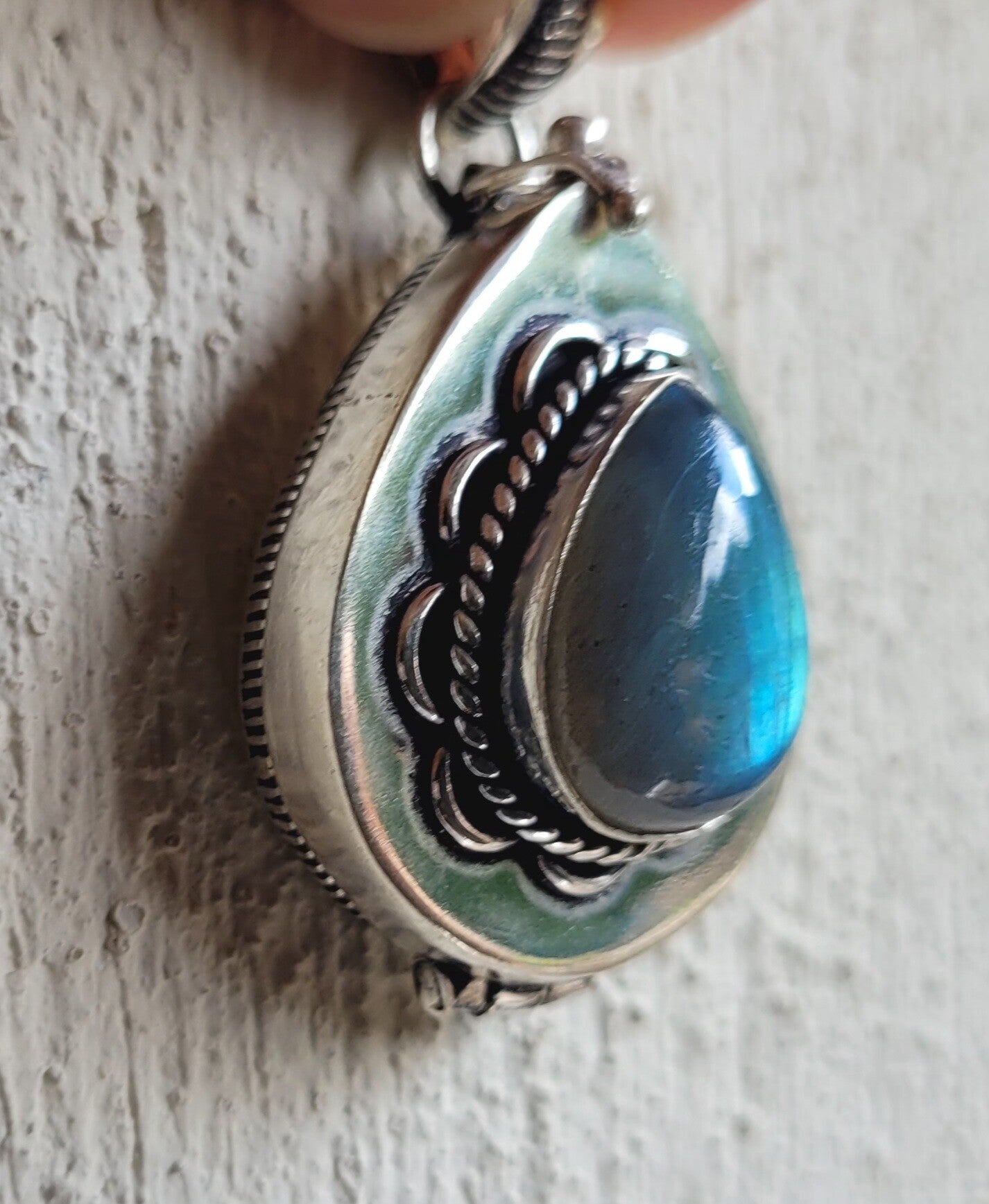Schöne Silber Anhänger Kästchen mit Labradorit.