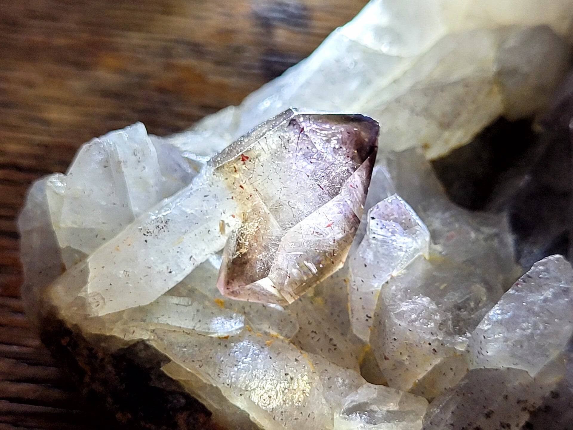Cluster smokey Amethyst van Zimbabwe. Met scepterkristal.meestal Shangaankwarts of Siriuskwarts genoemd.