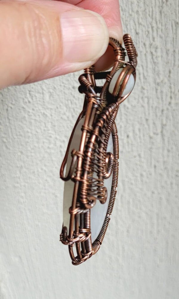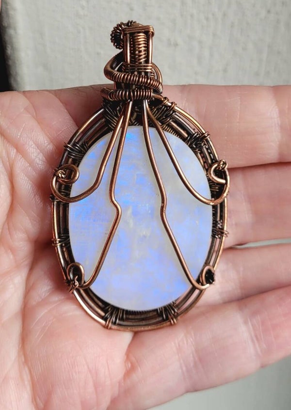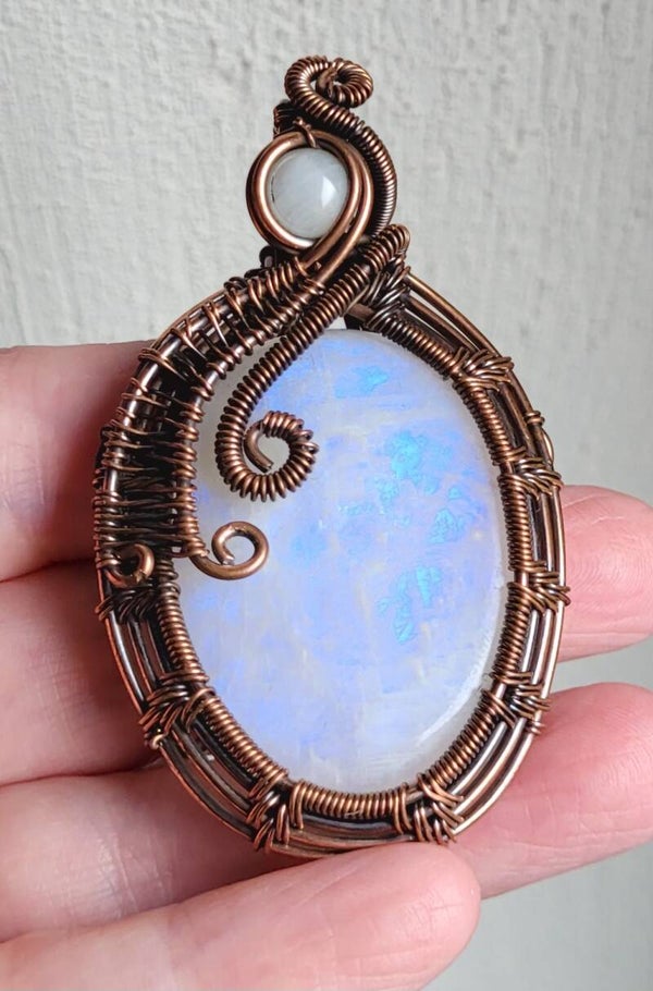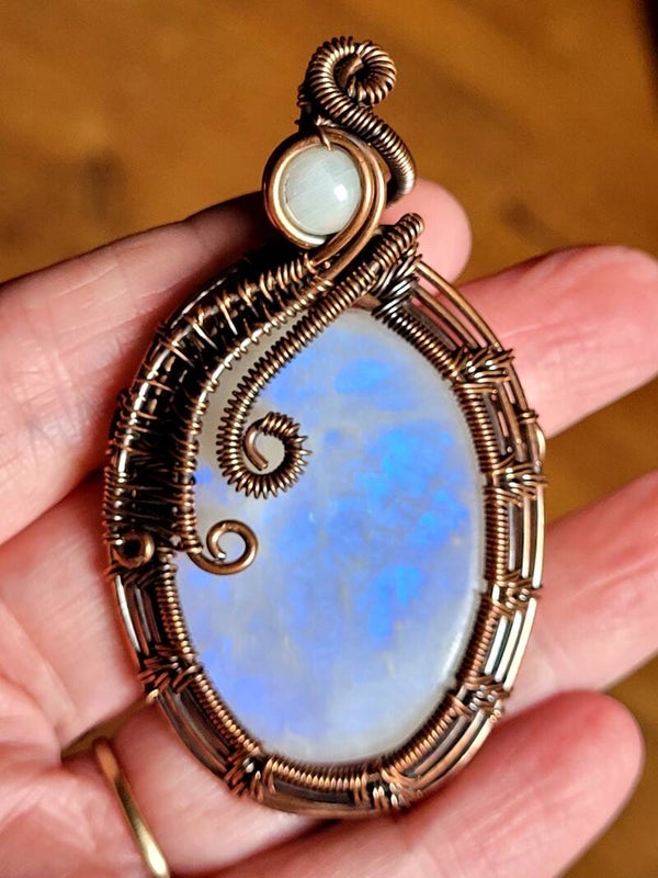 Wire wrap Copperwire with large Rainbow Moonstone and small one.