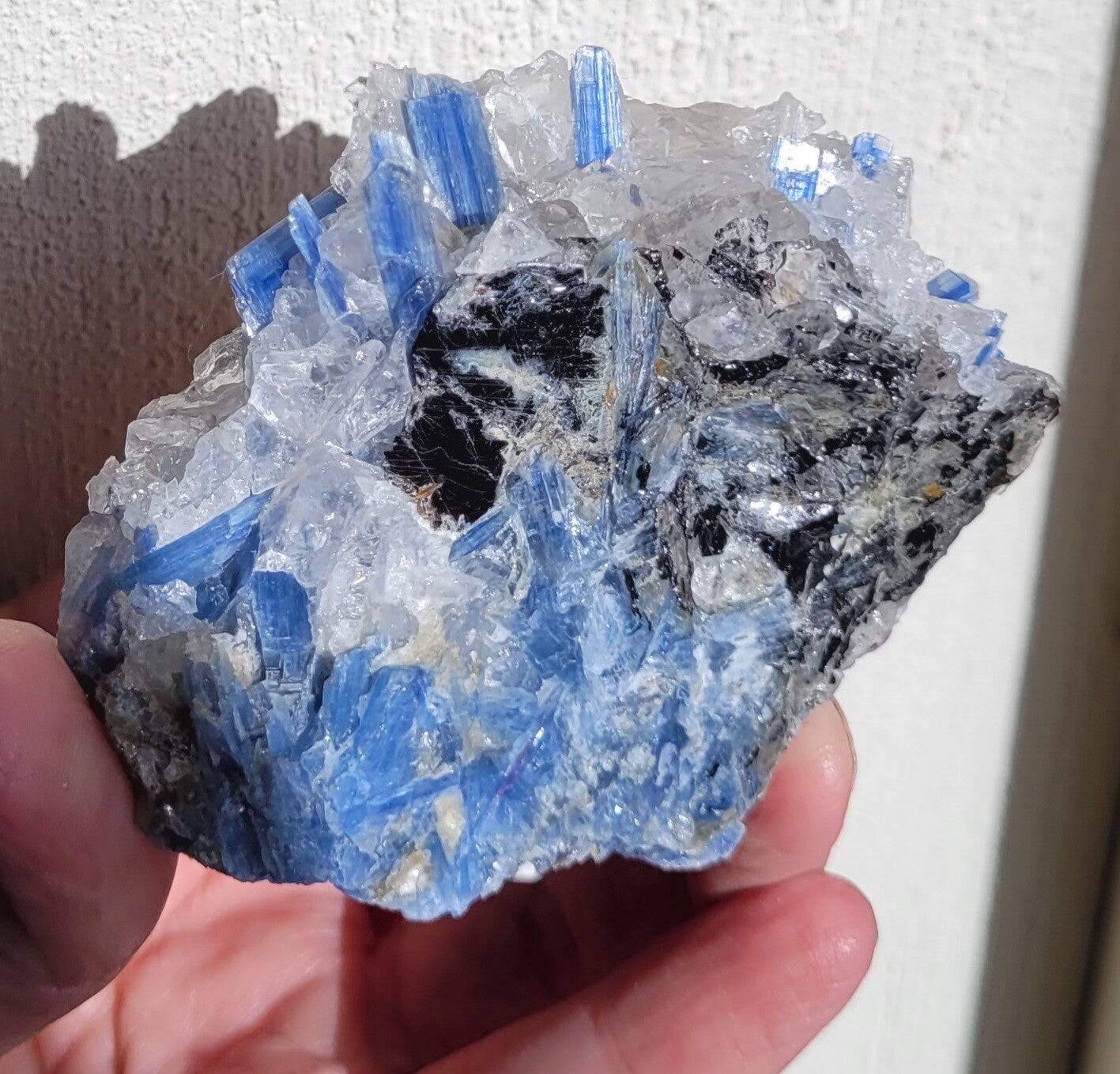 Blauwe Kyaniet in kwarts 234 gr. Ca 6 cm Cyanit im Quarz, Cyanite in Quartz