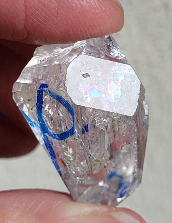 Double terminated Diamond quartz with Enhydro. 1 is easy to find, the other not. 'Herkimer' Diamond quartz from pakistan
