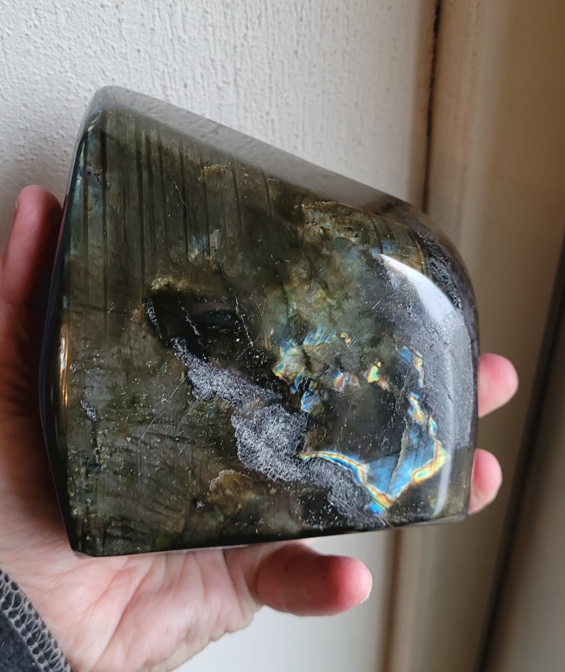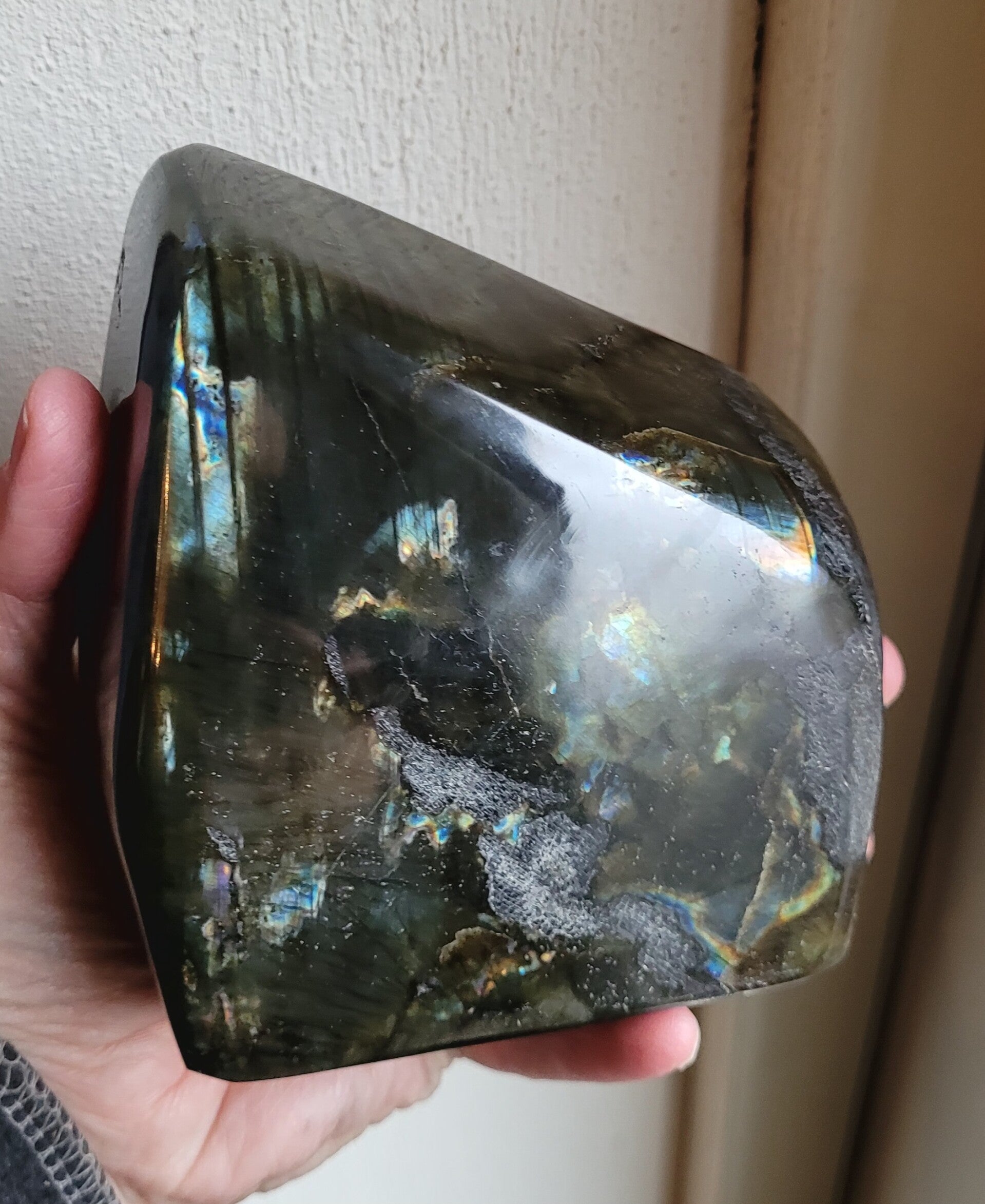 Mooie donkere Labradoriet met veel kleurweergave in streeppatroon.