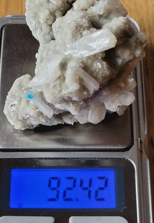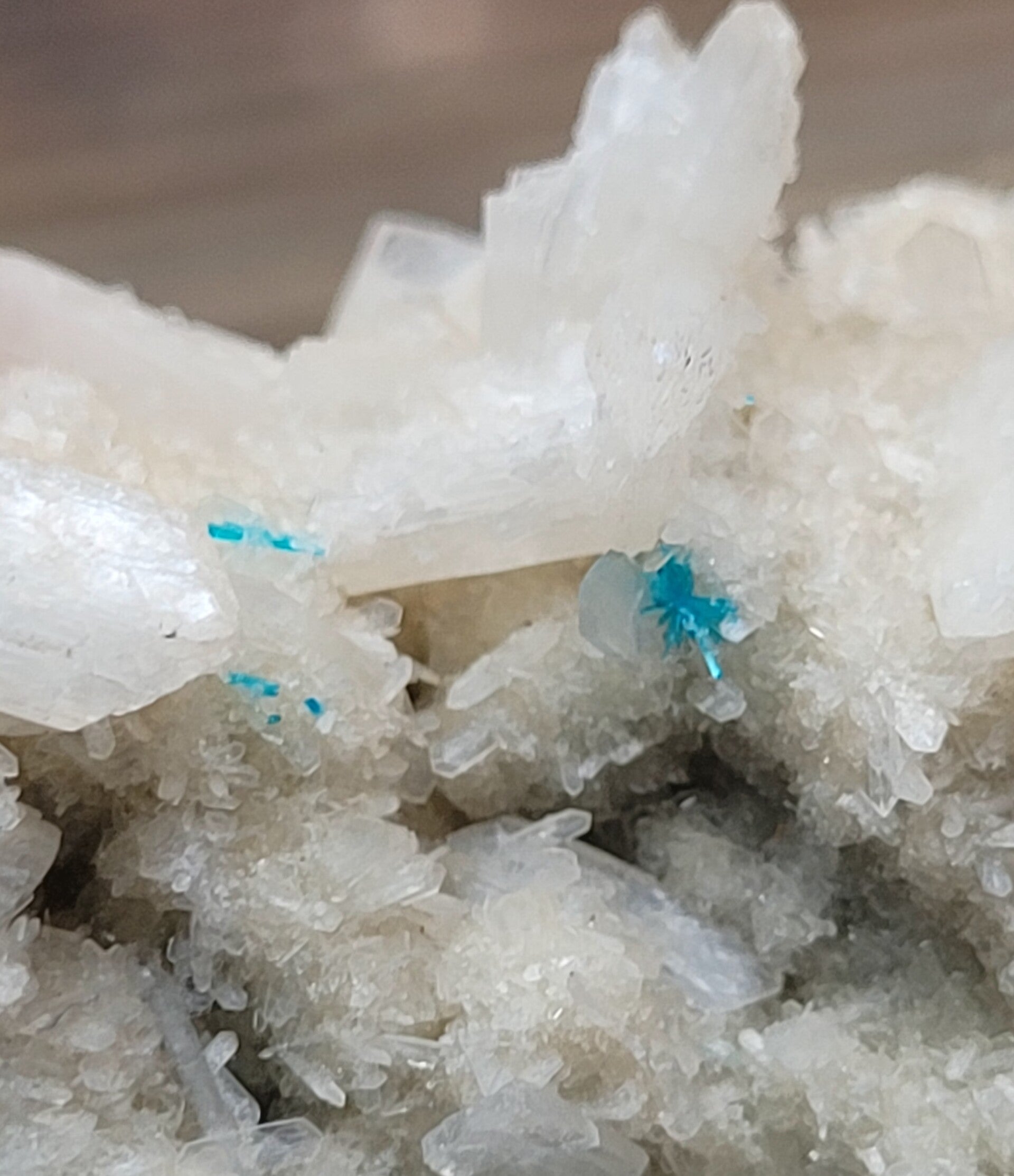 Couple of small Cavansite crystaks with Stilbite on Heulandite.
