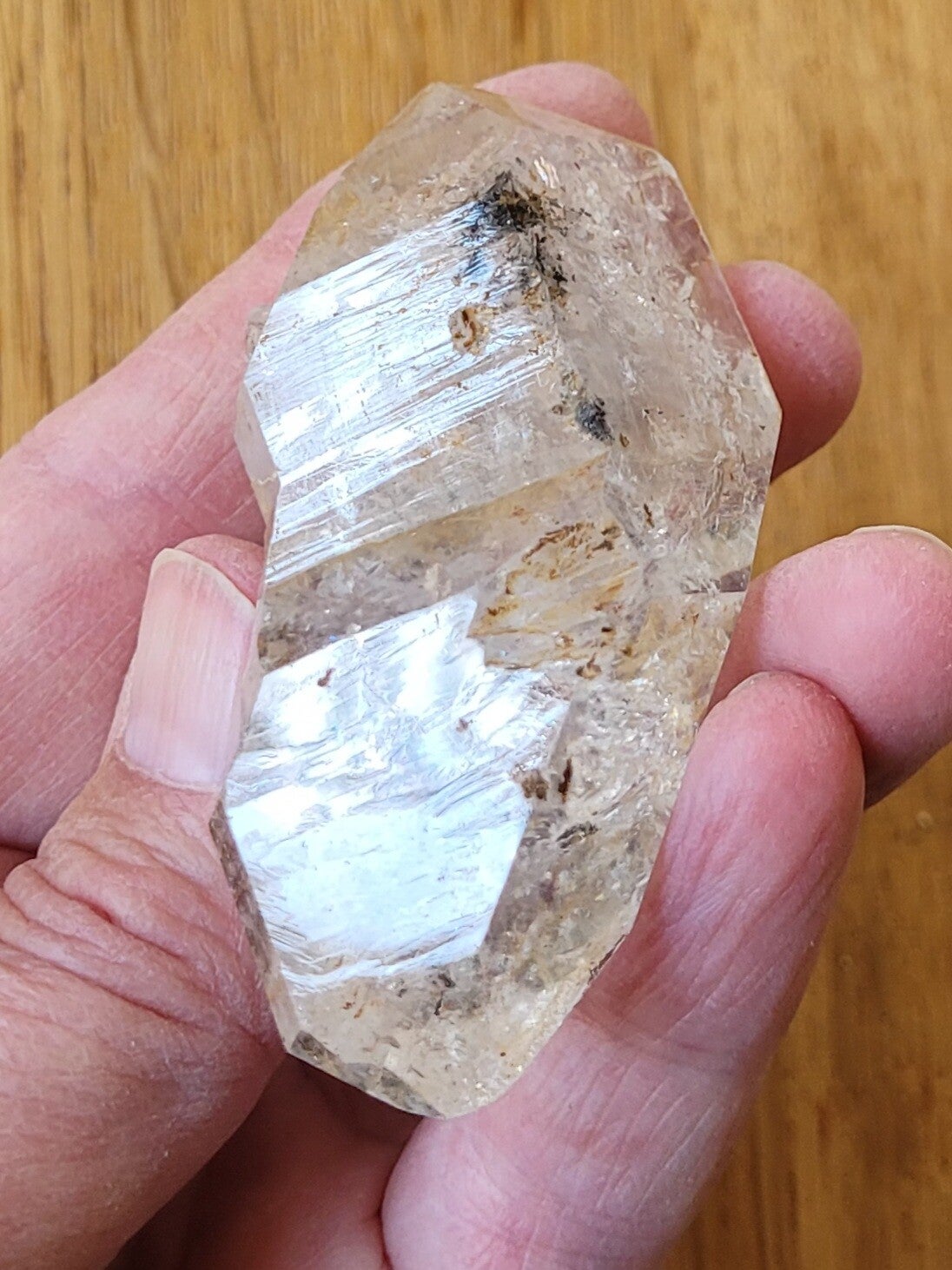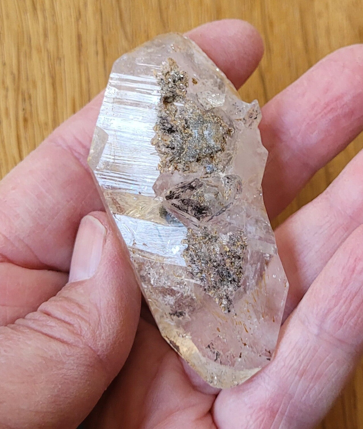 Double Terminated crystal sc. Diamond quartz with small crystal half in it with Petroleum inclusions.