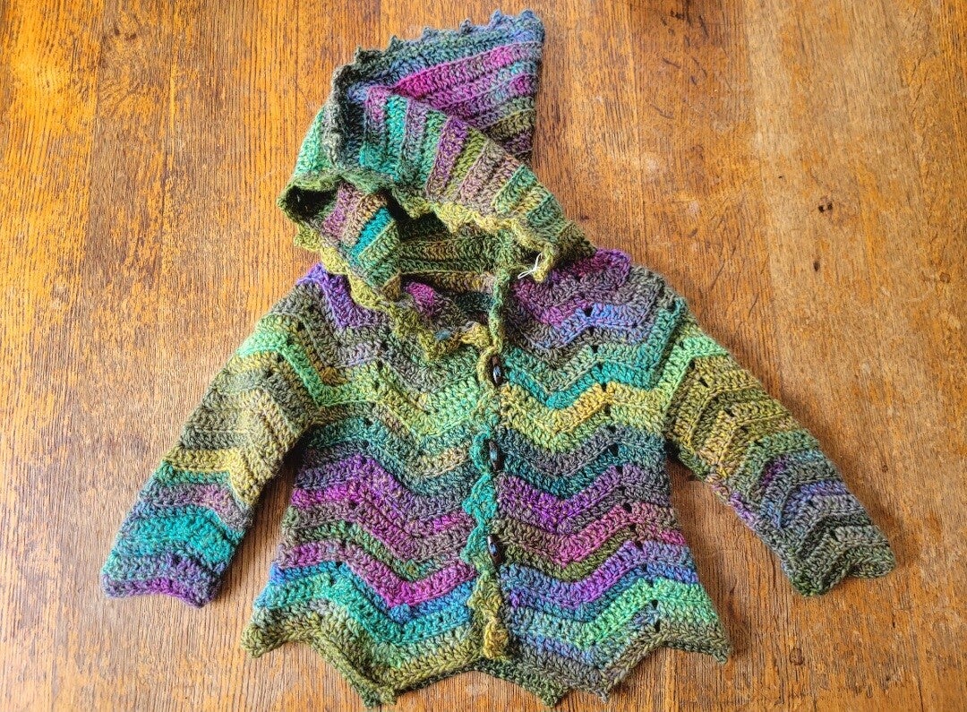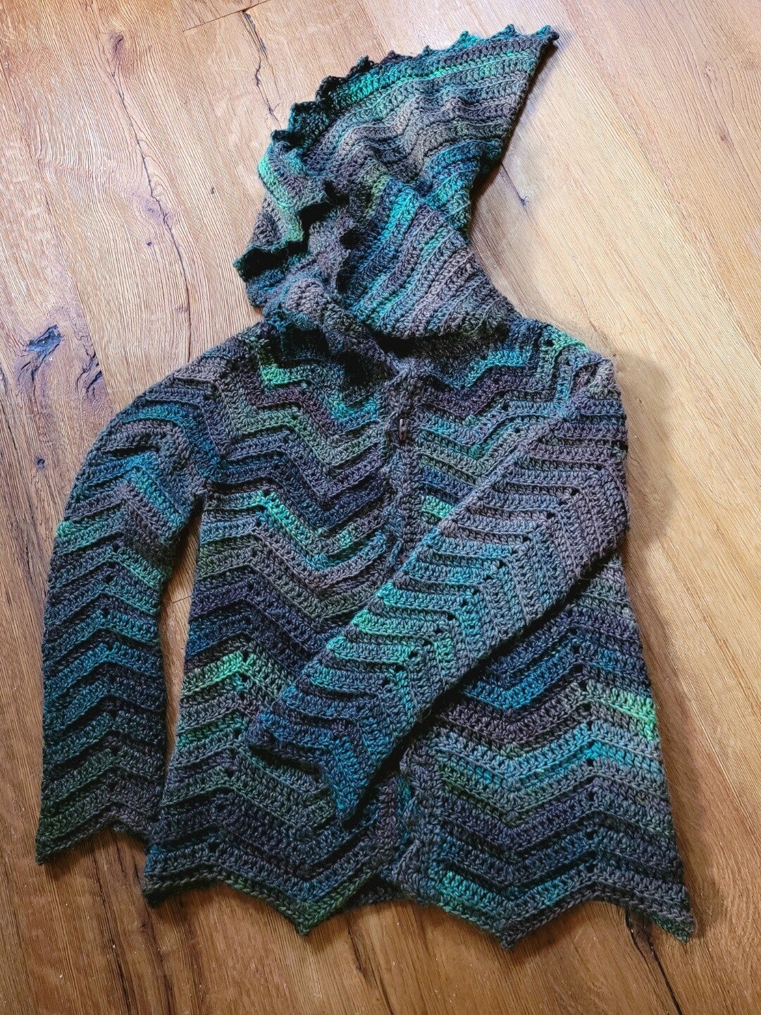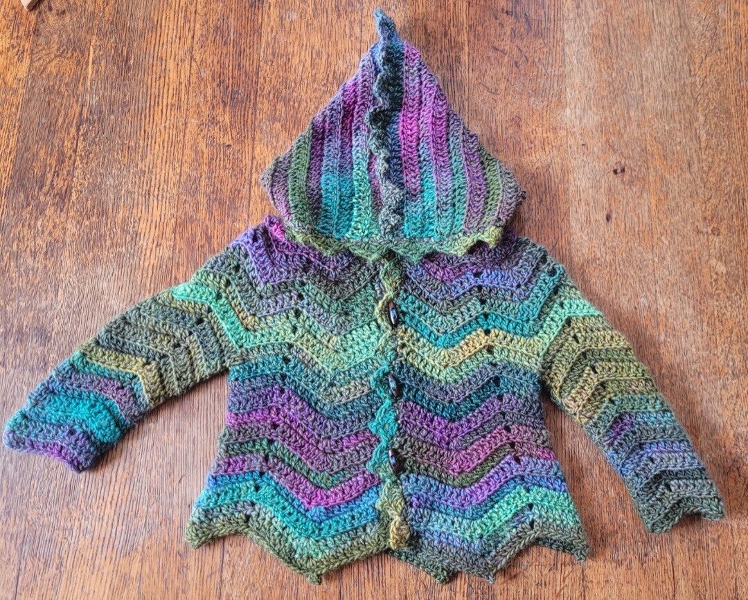 Fairy Dragon Jacket, Crochet Pattern for Child Cardigan newborn-8 years. But can also be adjusted for adult sizes. Witches / Dragon hood.