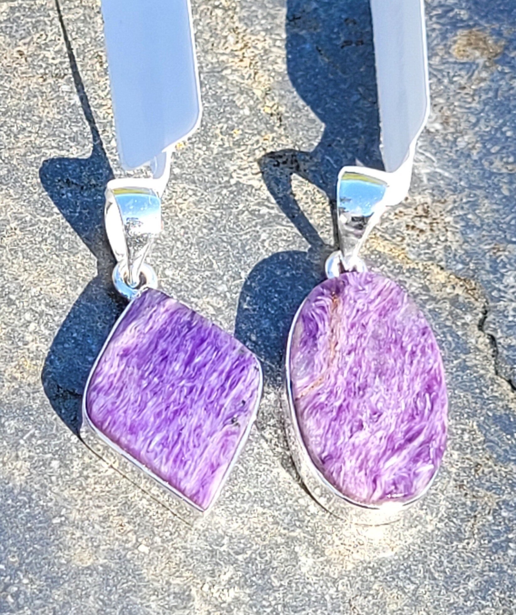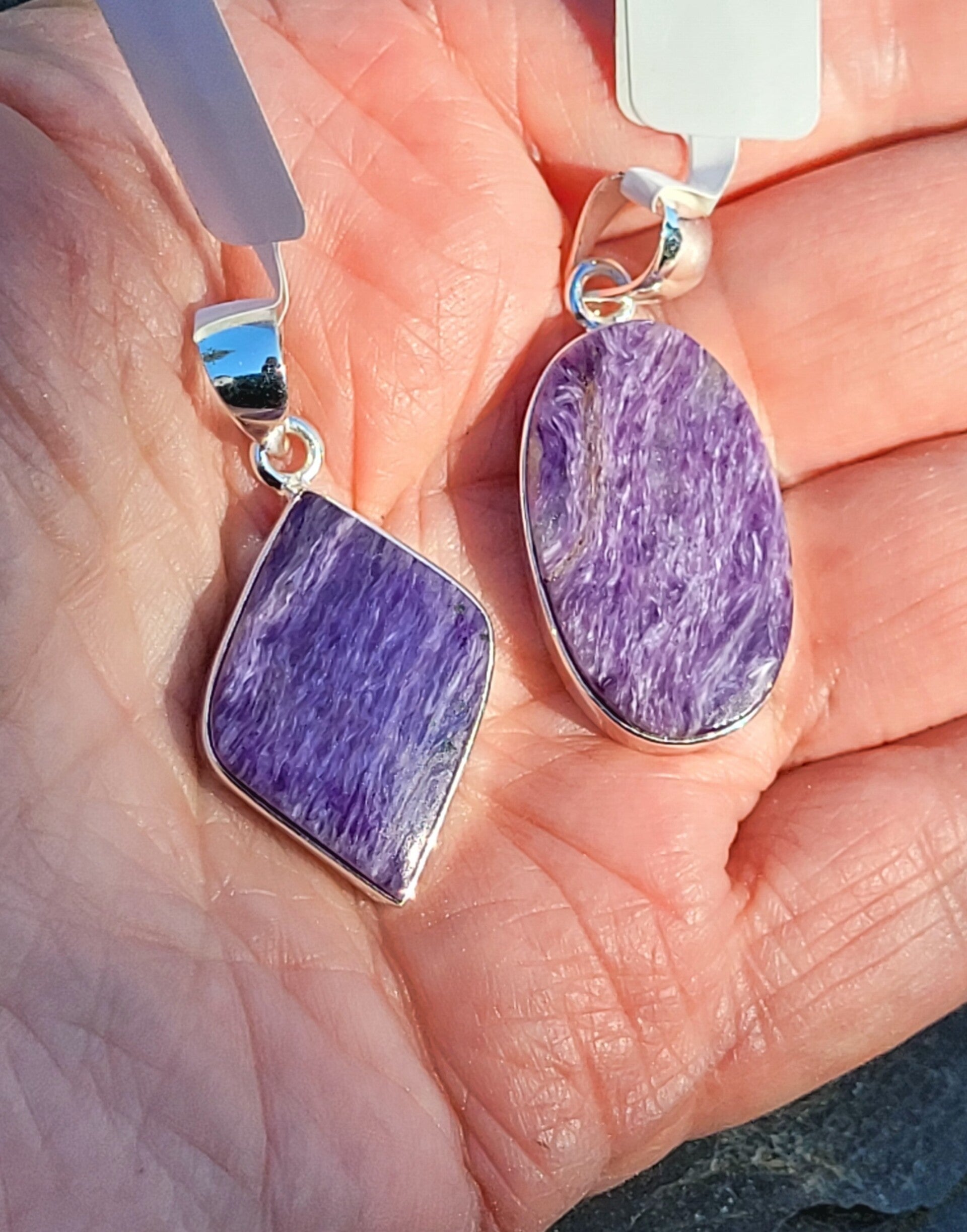 Zilver hanger Charoiet, Ca. 2,5 cm Anhänger Charoīt Silber, Charoite silver pendant