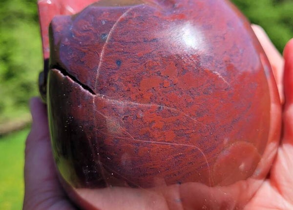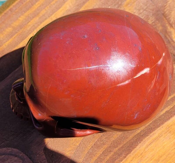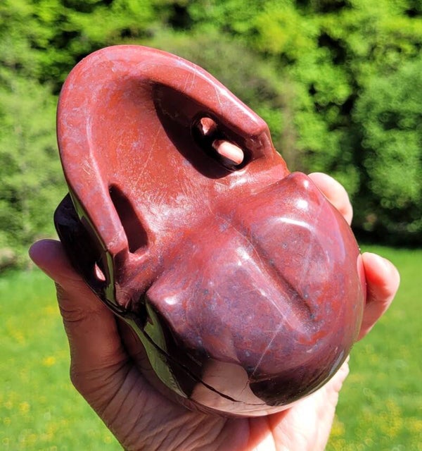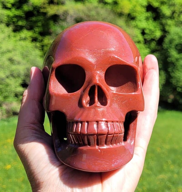Hele mooie realistic Crystal Skull Totenkopf. Gekocht als Rode Jaspis, maar bij nader onderzoek is het Rode Mosagaat. Zie de detailfoto's. Natuurlijke breuklijn, dat is geen beschadiging of breuk, loopt niet door.