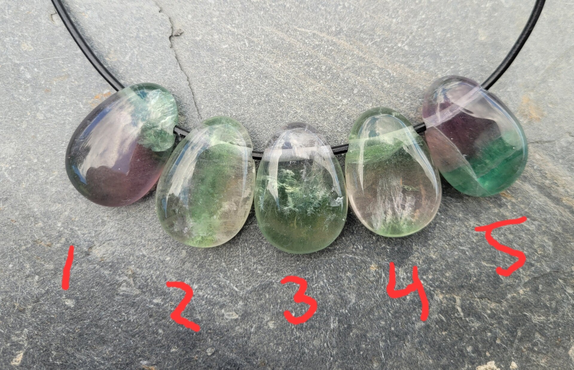 Hanger Fluoriet groen/ paars doorboord 3 cm Fluorite