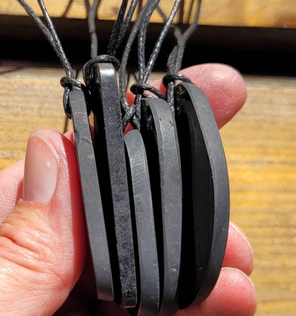 Doorboorde pendant Plakje gepolijst Shungiet Shungite 4 a 5 cm