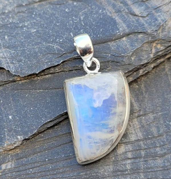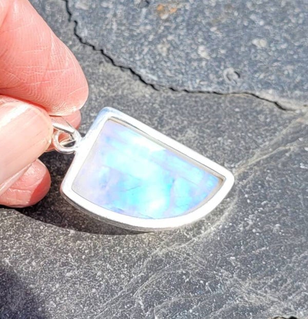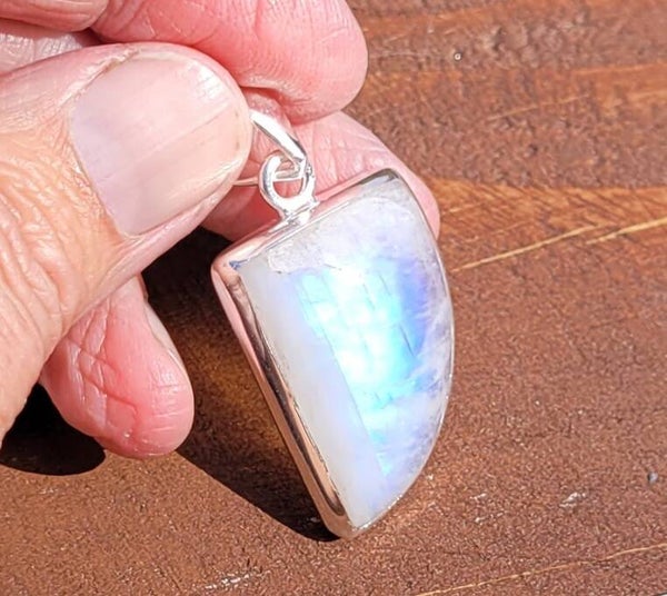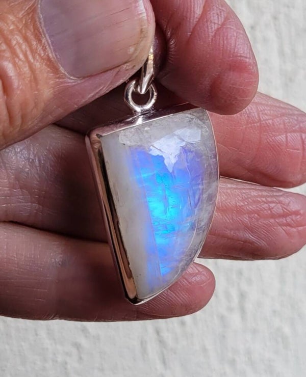 Mooie hanger Regenboog Maansteen met mooie blauwe flash.