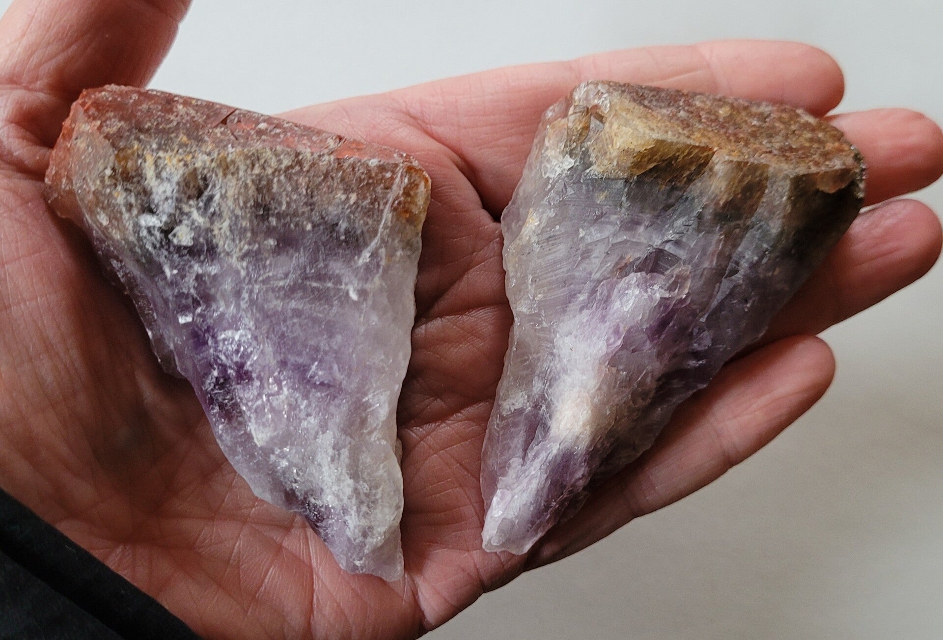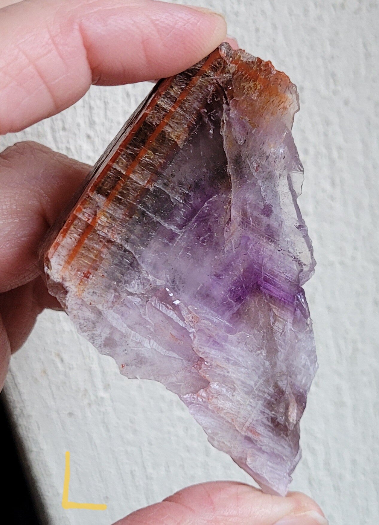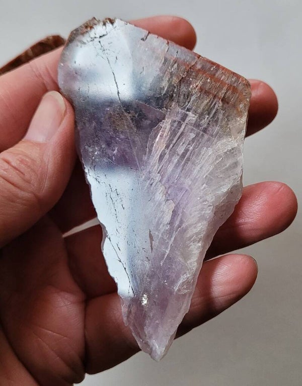 Mooie ruwe punt super 7, Cacoxenit die in het midden doorgezaagd is en de binnenkant is gepolijst, buitenkant is ruw.