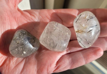 Mooie grote trommelsteen Toermalijnkwarts.