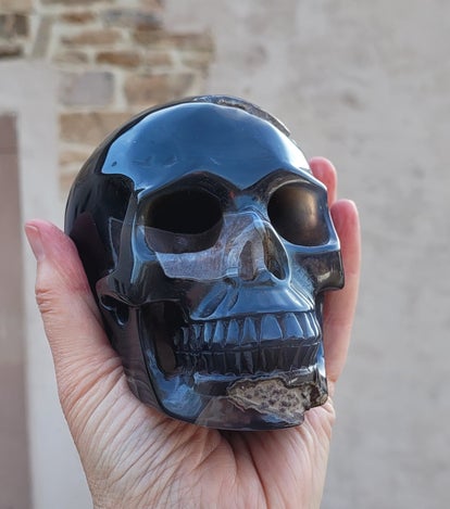 Mooie carving, skull Labradoriet- Labradorith, Labradorite